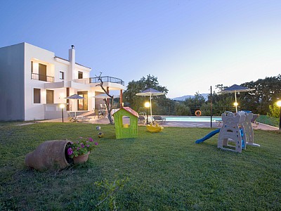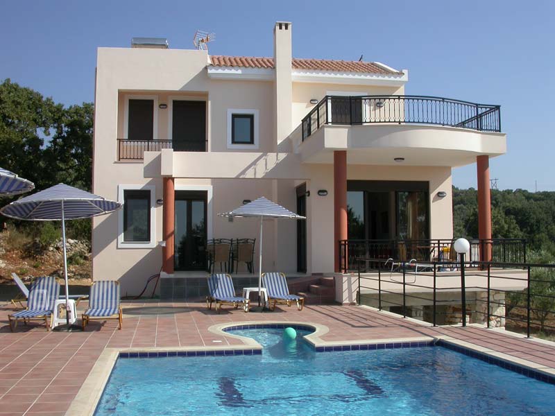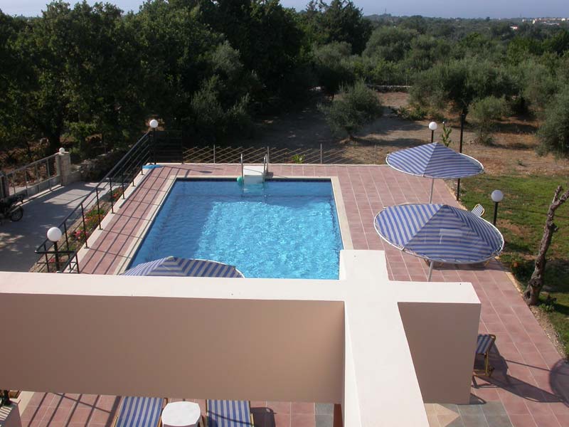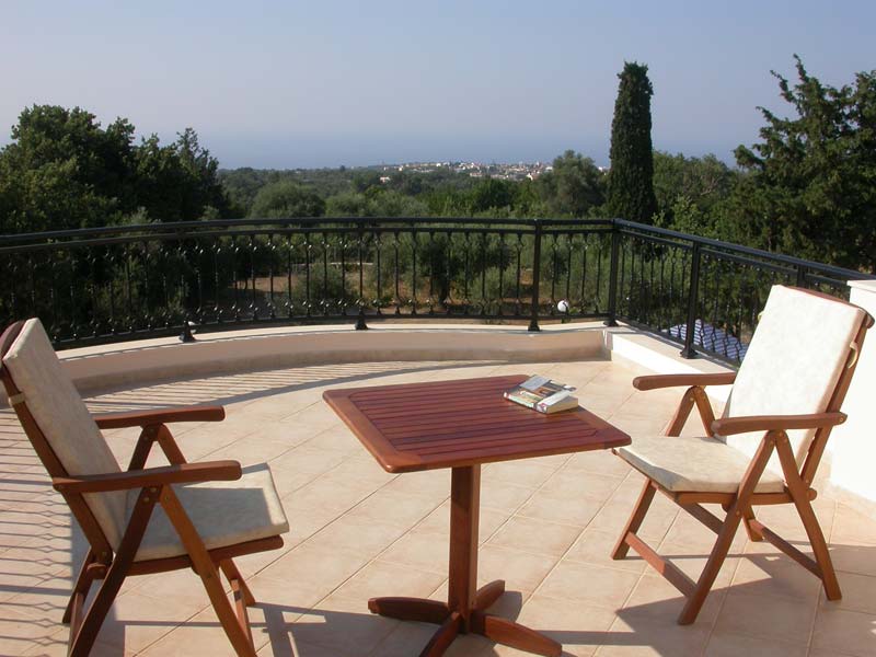 The villa is surrounded by olive groves, orange trees and is reached via a winding country lane and then a private drive. If you are looking for peace, privacy and stunning views in a wonderful location then this is the place for you. The lounge has a feature fireplace, satellite TV (limited channels) and DVD with patio doors opening out onto the front terrace and pool area. The dining area has seating for six, whilst the well fitted kitchen has a small dishwasher, electric hob, microwave and a washing machine. On this level also is a most attractive shower room with hydro massage shower, WC and vanity units. Next to this is the first of the villas three air-conditioned bedrooms, a pretty twin with patio doors onto the front terrace and a shower with WC en-suite. A marble staircase then leads up to the first floor and two further bedrooms. The first of these is a lovely double with patio doors leading to a very large, well furnished terrace overlooking the pool, gardens and the whole bay of Rethymnon in the distance. Adjacent to this is a beautifully fitted bathroom with large bath, WC and vanity unit. Finally on the opposite side of the landing is a twin bedroom with patio doors opening onto a small terrace overlooking the pool. Outside the 8 metre pool takes pride of place amongst spacious well furnished sun terraces and there is a separate children's section, which has a depth of 0.5 of a metre. There is ample outside dining for those meals al-fresco and the brick built barbeque compliments this area. The grounds are vast and gradually the owner is renovating the old grain threshing circle and olive press, all adding character and charm to this property. This villa is really an escape from the hustle and bustle of everyday life.
