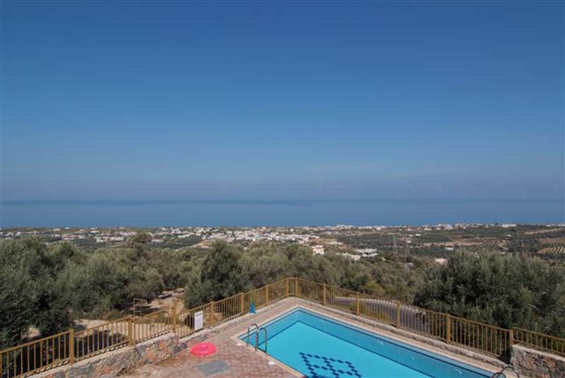 Ground FloorThe living area is open plan and has a muted colour scheme with pale tiled flooring throughout. A large sofa faces the television which has some satellite channels and a DVD player and there is also an attractive fireplace in the corner. Patio doors open onto a covered dining terrace with wonderful views to the sea. At the other end of the room is a dining table with seating for six and beyond that, a bright kitchen area which is fitted with pine units. The kitchen is well-equipped with a hob, oven, fridge/freezer, washing machine, dishwasher and microwave. Also on this floor is a well-furnished twin bedroom with access to a small balcony at the side of the villa. There is a separate shower room with a shower, WC and washbasin. First Floor There are two further bedrooms upstairs, one with a double bed and the other with twin beds, both sharing the use of a separate bathroom with bath and overhead shower, WC and washbasin. The rooms have patio doors to a first floor balcony with lovely sea views. Outside The garden is on a slightly lower level and has a pleasant lawn with some natural shade and a built-in barbecue with a stone seating and dining area. The pool, which has a shallow children's section at one end, is surrounded by a terrace where you can sunbathe on the sun-loungers provided or sit by the railings and admire the view. The ground floor dining terrace has a similarly scenic outlook Villa Ionna has a hilltop location with wonderful views over the surrounding area to the Cretan Sea below. The little village of Maroulas, 2km away, has a small range of facilities for your immediate needs whilst the bustling town of Platanes is 1km further on. Formerly a small fishing village, Platanes has grown into a popular coastal resort with activities to suit all tastes. The town has good shopping, dining and leisure facilities and if you are looking for a lively nightlife, there are numerous bars, discos and tavernas which keep buzzing until the early hours. The beach is long and sandy, with a range of water sports on offer and sunbeds and parasols available to hire The city of Rethymnon is ten minutes drive to the west from Platanes offering a variety of day and evening entertainment and a large choice of shops, restaurants and clubs. It has a huge expanse of gently sloping beach lined with tavernas and bars which stretches for 20km. The quaint old town is a mass of narrow alleyways lined with Turkish houses and minarets reflecting the 250 years when it was ruled by the Turks, with a Venetian influence showing in its charming houses with wooden balconies and wall fountains. The picturesque harbour is lined with fish restaurants offering a range of regional specialities and locally caught seafood, and there are regular boat excursions leaving from this point. In July/August, the city stages a Renaissance Festival and comes alive with folk music and traditional Greek dramas, or you may be able to sample locally produced wine in the public gardens during the annual Wine Festival.